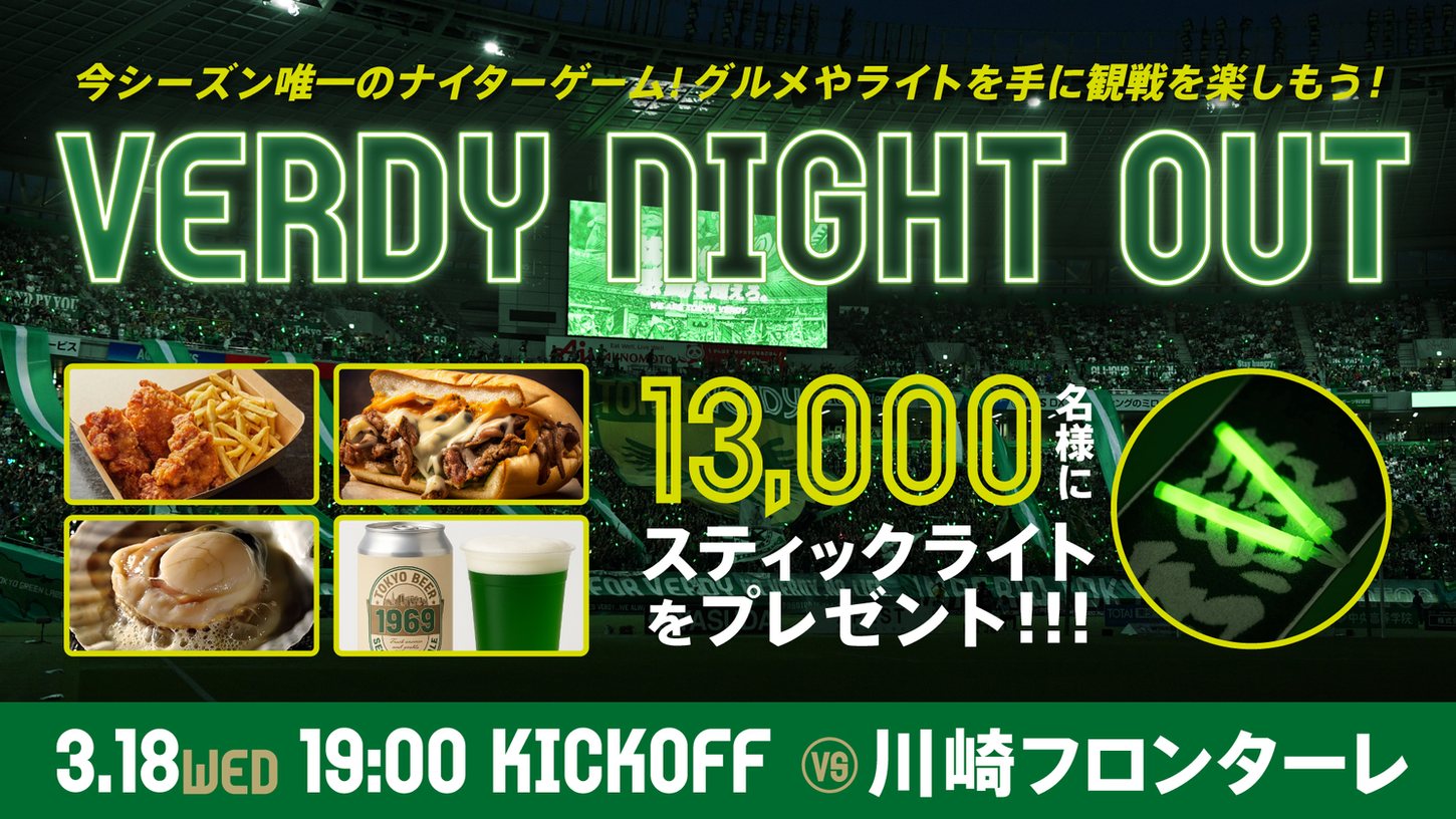 明治安田J1百年構想リーグの東京ヴェルディホームゲームで唯一のナイトゲームとなる川崎フロンターレ戦では『VERDY NIGHT OUT』を開催!